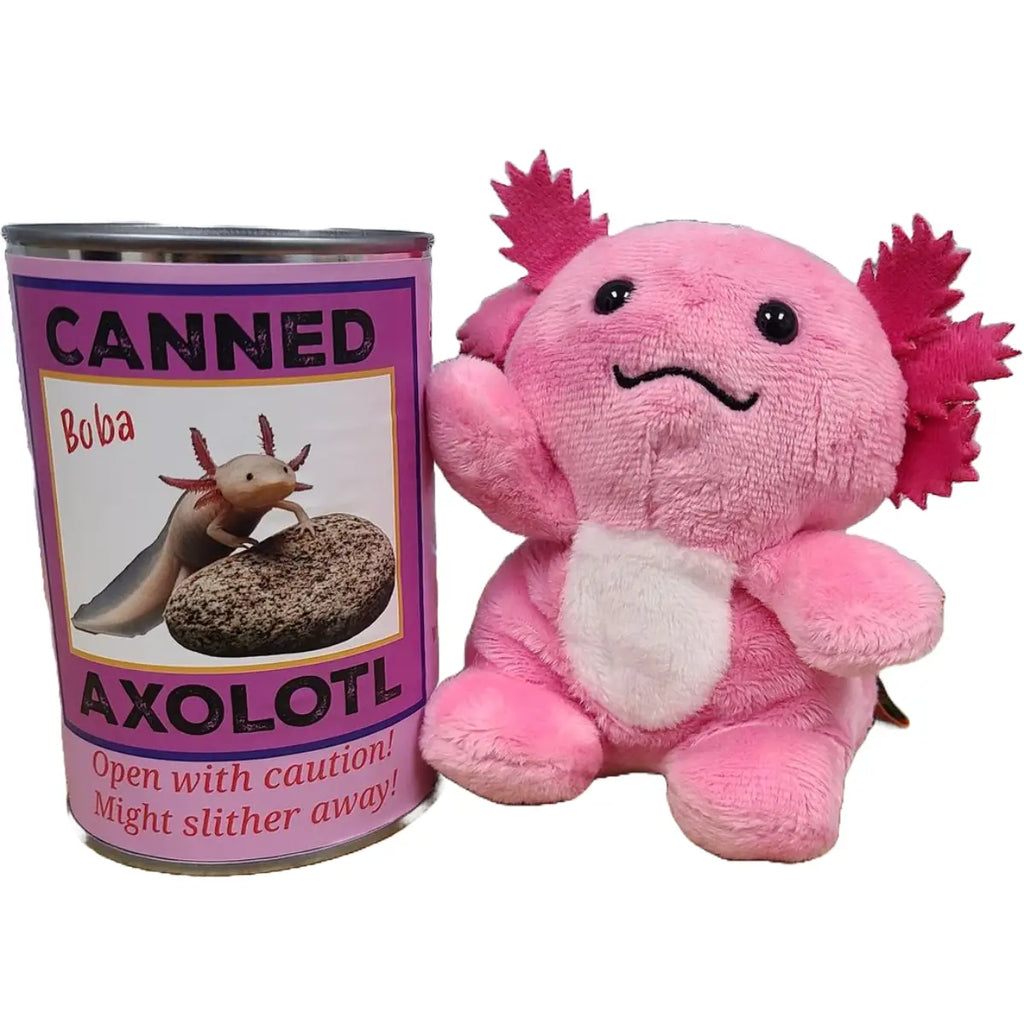 Meet Boba the Canned Axolotl Included is 1 plush axolotl sealed in a can. Use a can opener to open the fun gift or choose a pop top lid Plush measures approx. 5 inches Funny axolotl jokes and an interesting fact on the can Designed and canned in the USA. Can and label made in USA. Plush made in China. 100% recyclable packaging Our cans are loved by all, children and adults alike. Few people can say they've received a Canned Axolotl before! People also consider: stuffed animals gifts mothers day kids toys mother's day mom mens gifts summer teacher appreciation gifts axolotls gifts birthday kids birthday toys for kids texas wish pets unique gifts colorado spring decor exotic pet reptile store amphibian gifts toysmith kids toys stocking stuffers Tennessee teacher gifts Christmas gifts faire plush Michigan Wisconsin Texas Louisiana plush animals toys stuffed animals Oklahoma Arizona unique gifts gift shop items Made in Oklahoma