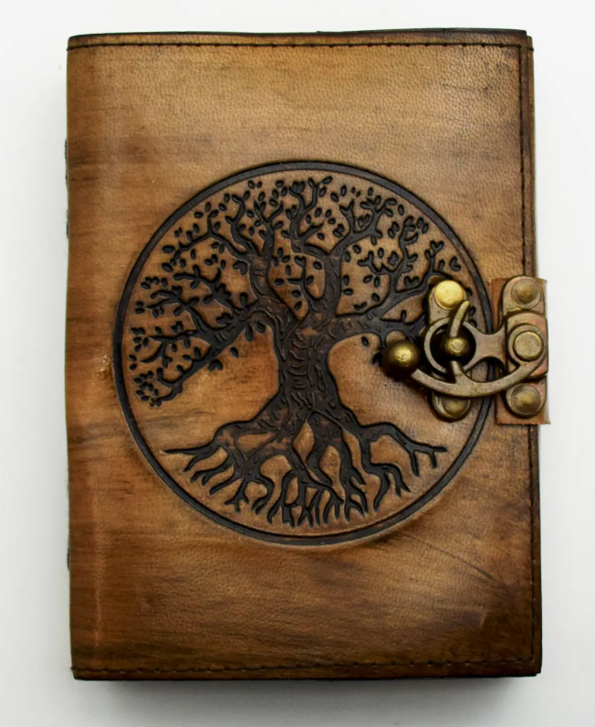 5 x 7 inch Tree of Life Leather Embossed Journal. Come with 120 pages of Aged Looking Handmade Linen Parchment Paper.